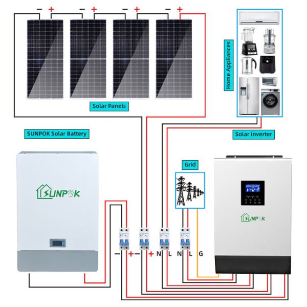 The sunpok energy hybrid solar system kit home solar storage system solution adopts a high-efficiency system design. The energy storage unit adopts a standardized energy storage module composed of deep-cycle lithium-ion batteries. The photovoltaic array and energy storage unit can be flexibly expanded to meet user needs. Intelligent storage can control integrated design, the system is simpler and more reliable.